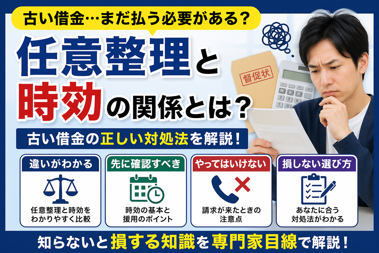 古い借金は、先に時効の可否を確認したほうがよいケースがあります。反対に、時効が難しい借金であれば、任意整理によって返済負担を軽くするという考え方が現実的です。