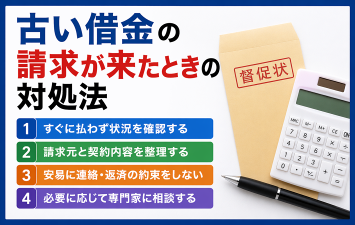 古い借金の請求が来たときは、まず事実関係を整理し、必要に応じて法テラスや専門家へ相談しながら、自分にとって最も不利の少ない方法を選ぶことが大切です。