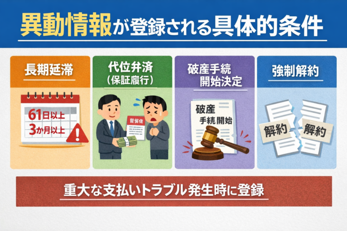 異動情報とは、信用情報機関に登録される重大な支払トラブルの記録です。