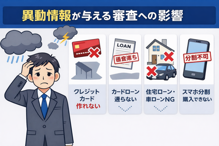 異動情報が登録されている間、金融機関の審査は極めて厳しくなります。