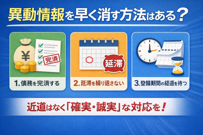 金融機関は「返済能力」と「返済意思」を重視します。異動情報はその両方に疑問符を付けるため、審査上は大きなマイナス材料となります。
