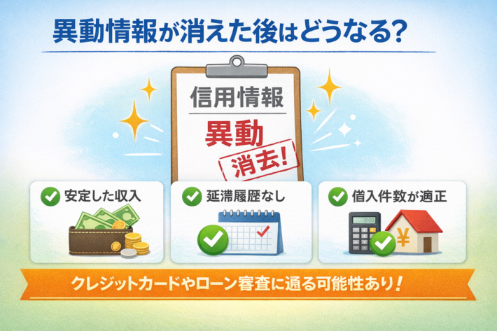 登録期間が経過すれば、信用情報から異動表示は削除されます。