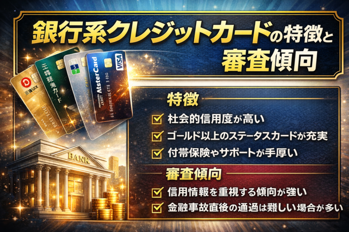 銀行系カードは、社会的信用度が高く、付帯保険やサポート体制が充実している点が特徴です。