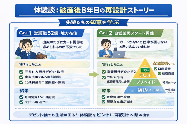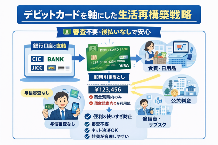 デビットカードを中心に据えることで、「使える範囲内で生活する」習慣が自然に身につきます。これは信用回復の第一歩でもあります。