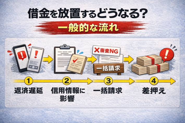 借金問題を放置すると、次のような流れで状況が進む可能性があります。
