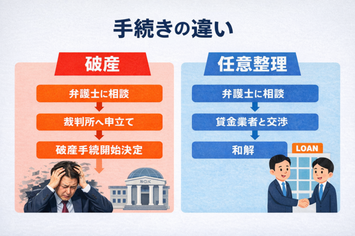 この記事では、金融事故後の生活再建を目指す人のために、破産と任意整理の違いをわかりやすく比較し、それぞれの特徴やメリット・デメリットを詳しく解説します。