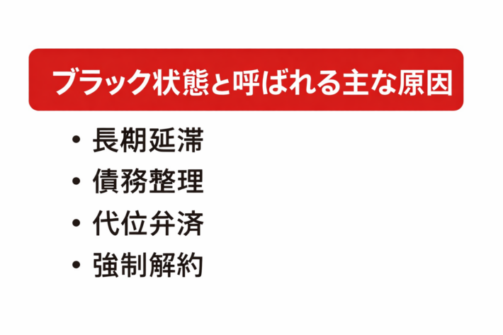 いわゆるブラック状態になるのは、信用情報に金融事故が登録された場合です。金融事故にはさまざまな種類がありますが、代表的なものを紹介します。