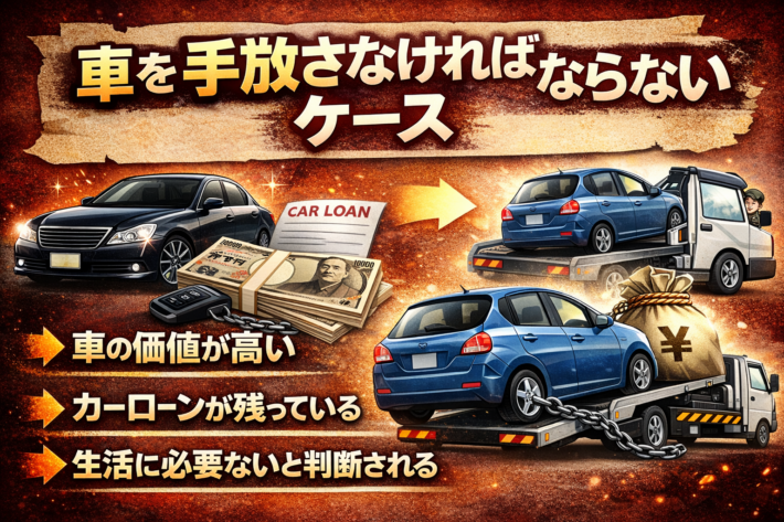 車が複数台ある場合や、高級車など生活に必ずしも必要とは言えない車の場合、裁判所が処分対象と判断することがあります。