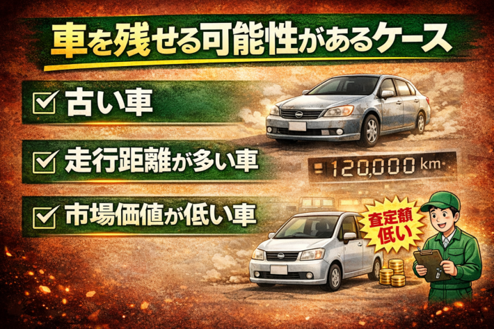 そのため、古い車や価値が低い車であれば、破産手続きでも手元に残せるケースがあります。
