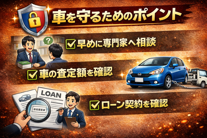 債務整理を検討している場合、車を守るために次のポイントを確認しておくとよいでしょう。