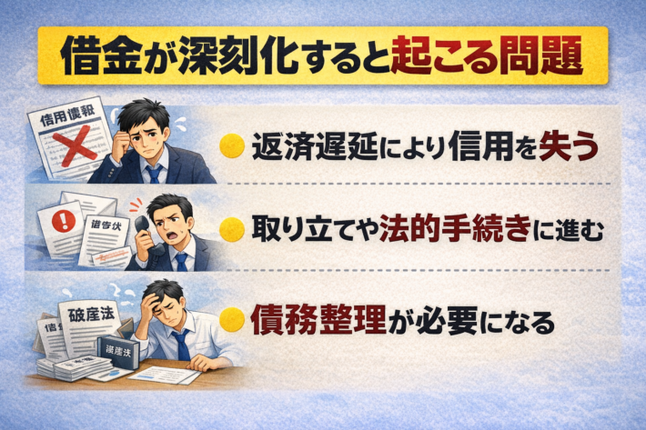 • 借金増えすぎ場合起こる問題