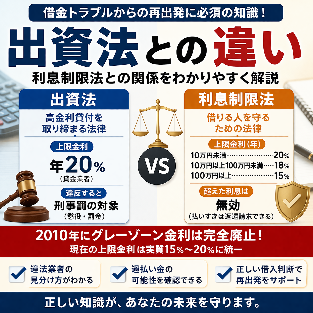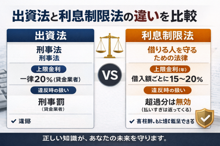 出資法との違いとは?利息制限法との関係・上限金利・違反リスクを完全解説